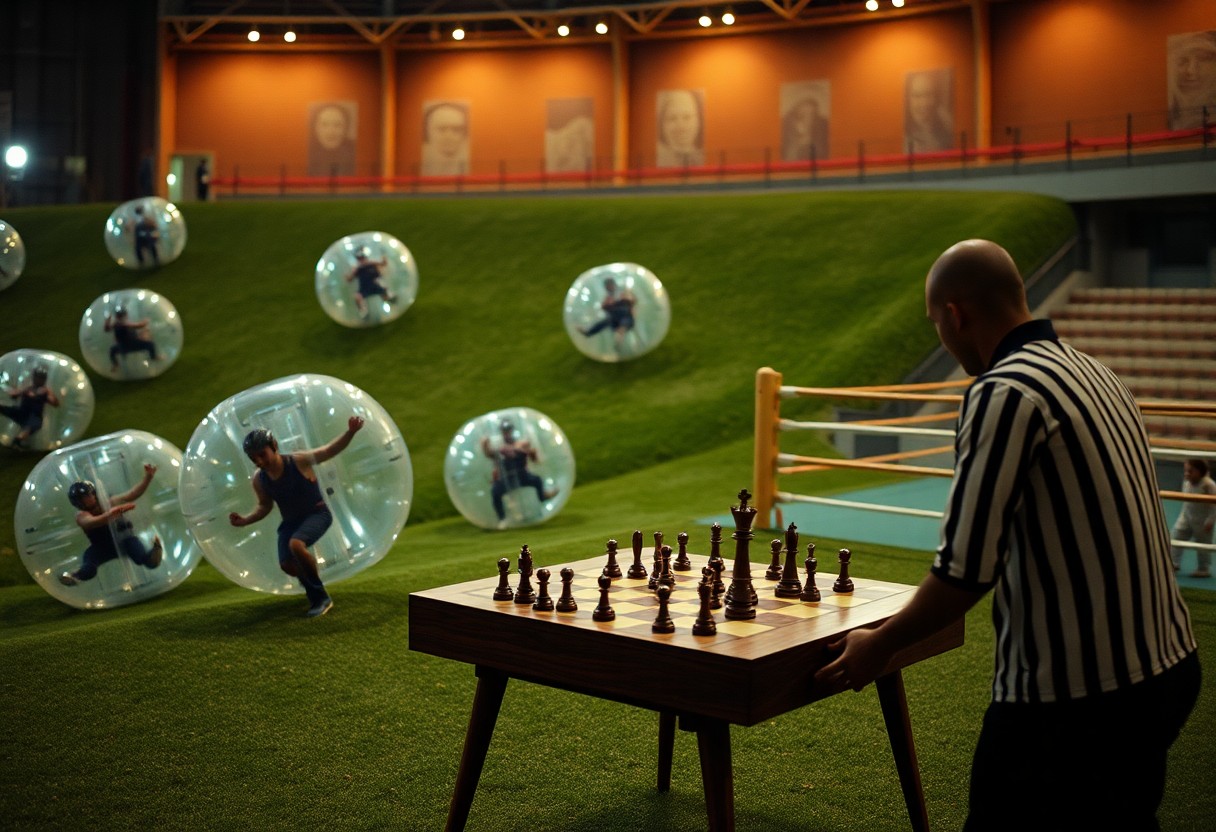 A: Na listi se nalaze sportovi poput cheese rollinga (trka niz brdo gde takmičari jure za valjkom sira), chess boxinga (izmjenjivanje rundi šaha i bokserskih rundi), bog snorkellinga (plivanje kroz močvaru uz upotrebu peraja i maske), extreme ironinga (peglanje odeće na neobičnim lokacijama), underwater hockeyja (hokej ispod vode sa kratkim palicama), wife carryinga (nošenje partnerke kroz prepreke za vreme), zorbinga (kotrljanje u velikom transparentnom balonu), toe wrestlinga (natjeravanje prstima stopala), shin-kicking (udarci u list) i unicycle polo (polo na monociklima). Pravila variraju: neki su izvedeni iz tradicionalnih sportova sa sigurnosnim modifikacijama (npr. underwater hockey ima timove, golove i palice), drugi su više zabavni spektakli sa jednostavnim ciljevima (npr. ko prvi stigne do sira). Pre početka uvek proverite službena pravila takmičenja i preporučenu zaštitnu opremu.